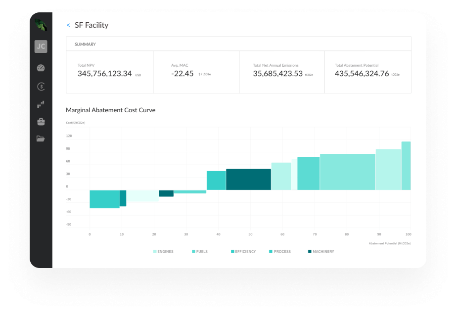 Identify process-level GHG reduction opportunities & the optimal transition pathway
